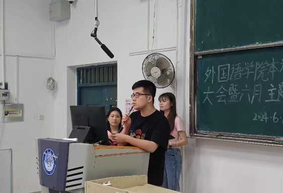 2024年6月13日晚,南昌大学外国语学院本科生党支部于外经楼103教室召开了六月主题党日活动。本次党日活动由亚欧系党支部委员洪宇玟主持,本科生党支部体正式党员以及预备党员参加。