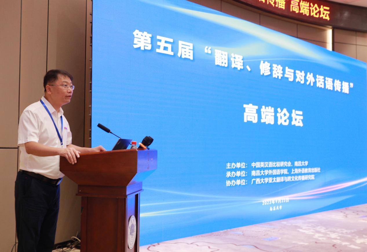 2023年9月23日,第五届“翻译、修辞与对外话语传播”高端论坛于南昌大学成功举办。本届论坛由中国英汉语比较研究会、南昌大学主办,南昌大学外国语学院、上海外语教育出版社承办,广西大学亚太翻译与跨文化传播研究院协办。论坛设有八场专家主旨报告,国内百余位学者、教师研究生参加了论坛活动